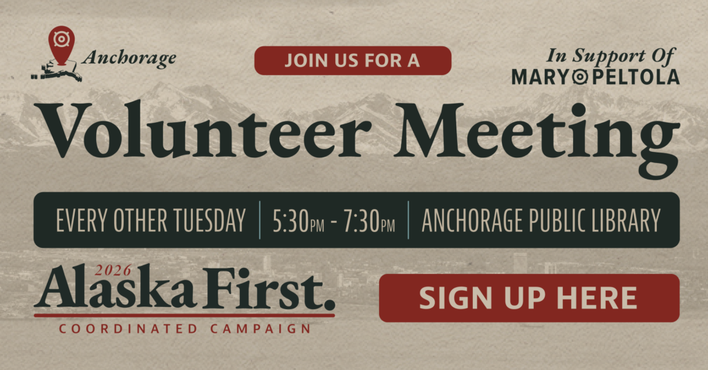 Alaska First Coordinated Campaign, in support of Mary Peltola, is holding a volunteer meeting in Anchorage.