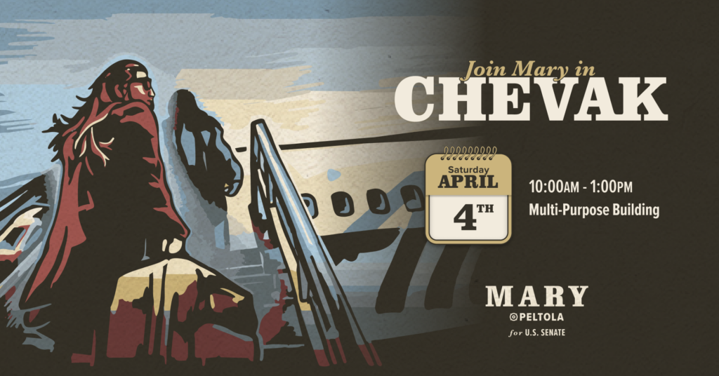 Mary Peltola is heading out on the road and will be in Chevak on Saturday, April 4th.