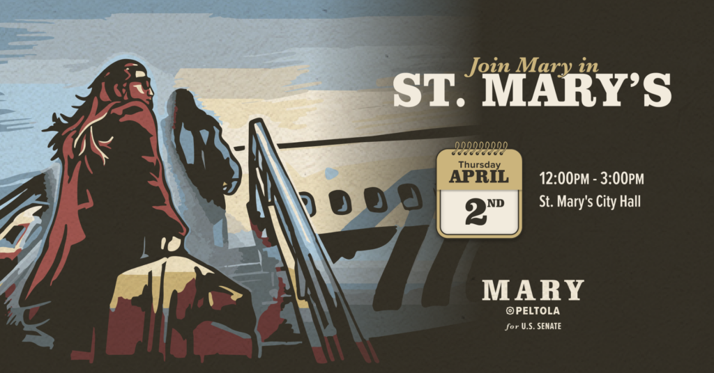 Mary Peltola is heading out on the road and will be in St. Mary’s on Thursday, April 2nd.