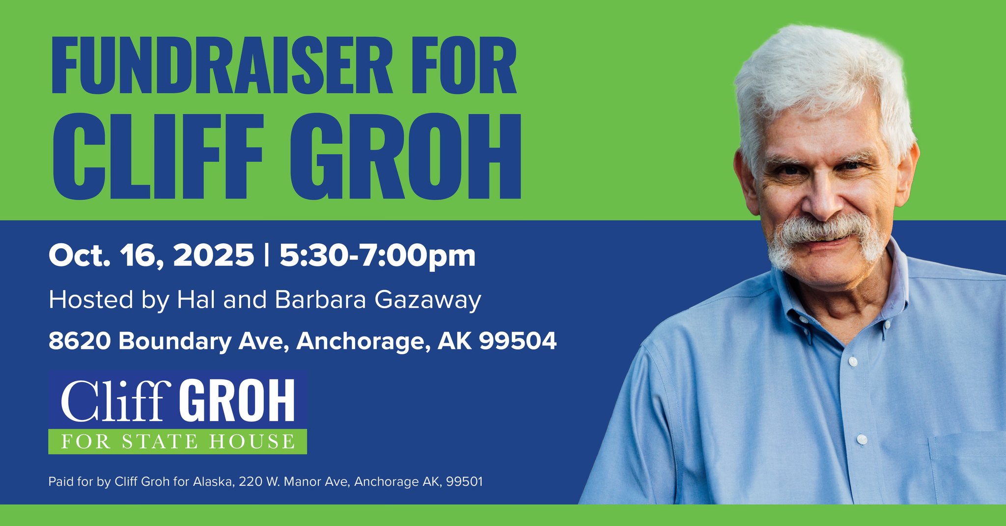 Join us for a campaign fundraiser to elect Cliff Groh to the state house hosted by Hal and Barbara Gazaway.Cliff is running for the Alaska State House so he can […]
