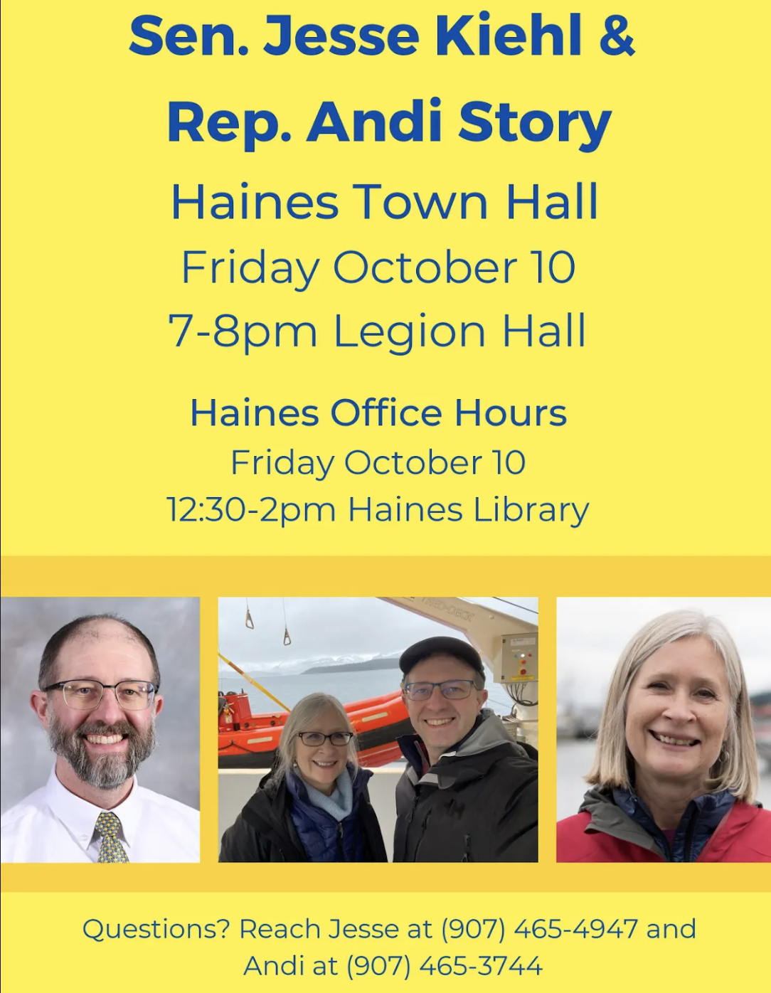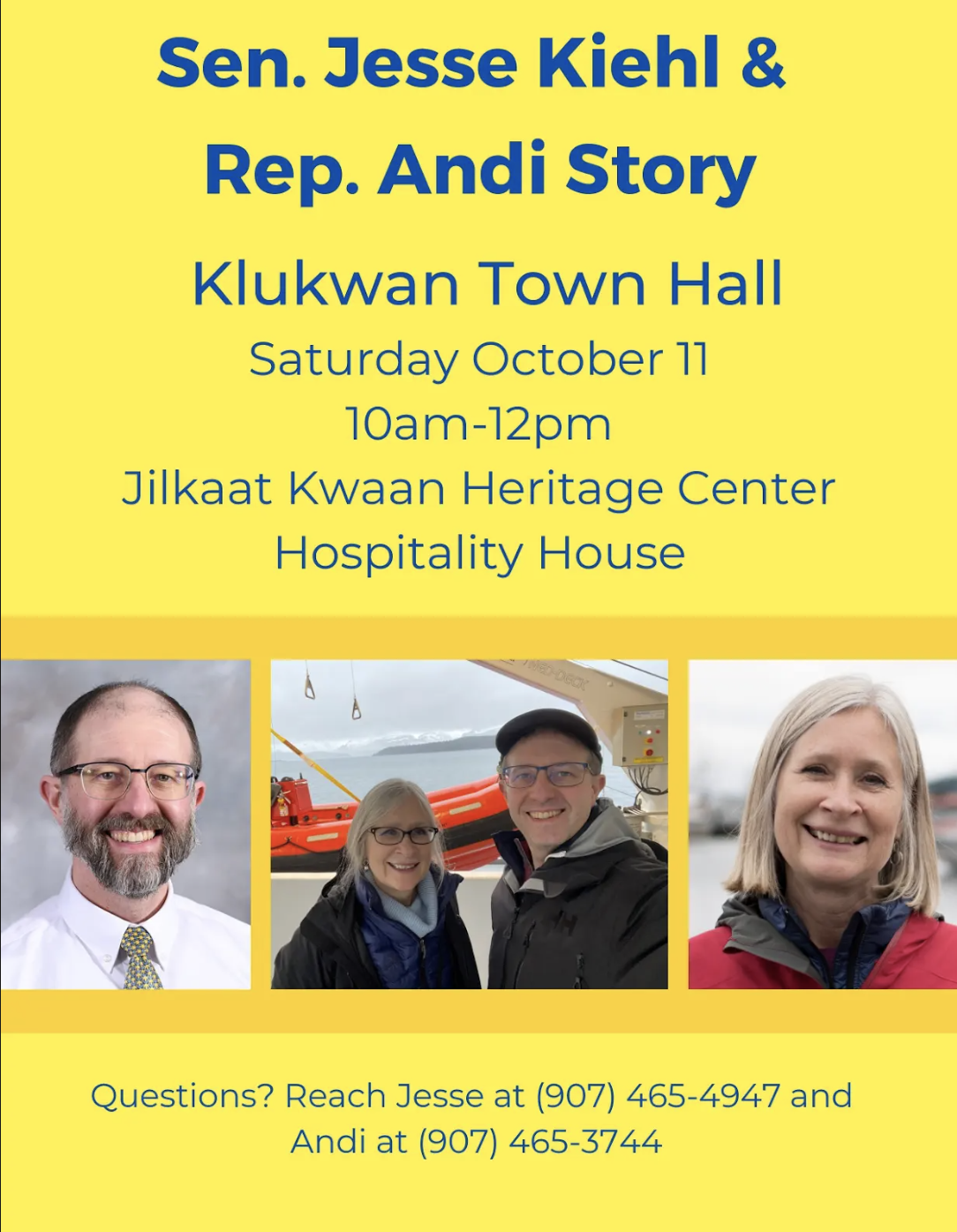 Join Sen. Jesse Kiehl and Rep. Andi Story for a Town Hall at the Jilkaat Kwaan Heritage Center! Get a legislative update, ask questions, and share your concerns & solutions.