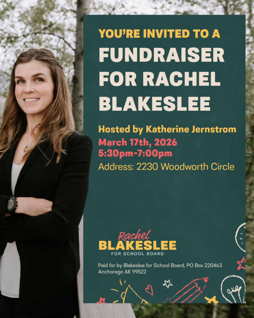 Join Rachel Blakeslee for Anchorage School Board and Cliff Groh for State House at Deborah Bonito and Mark Begich’s home for a fundraiser!Blakeslee and Groh are the team that will deliver […]
